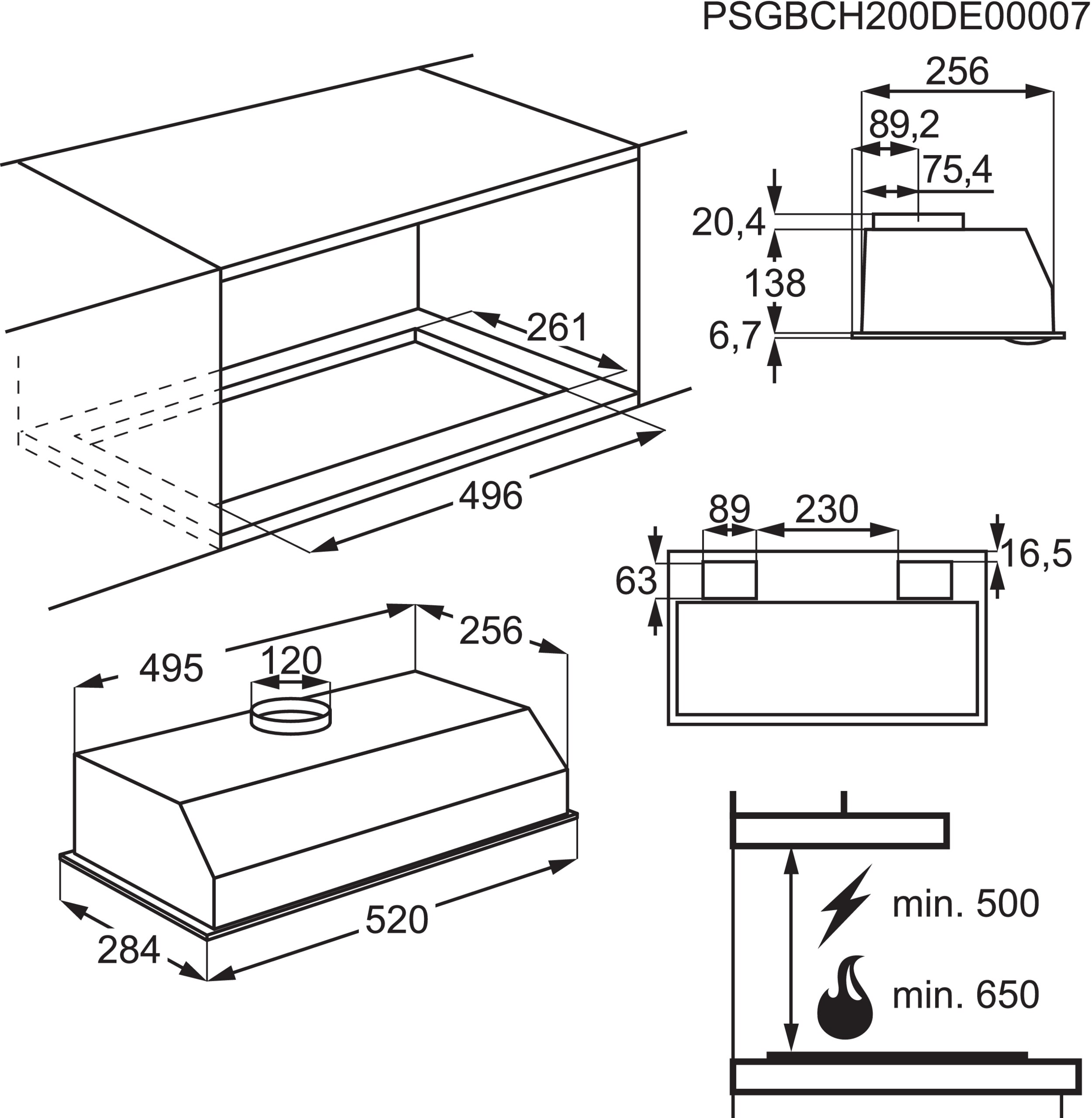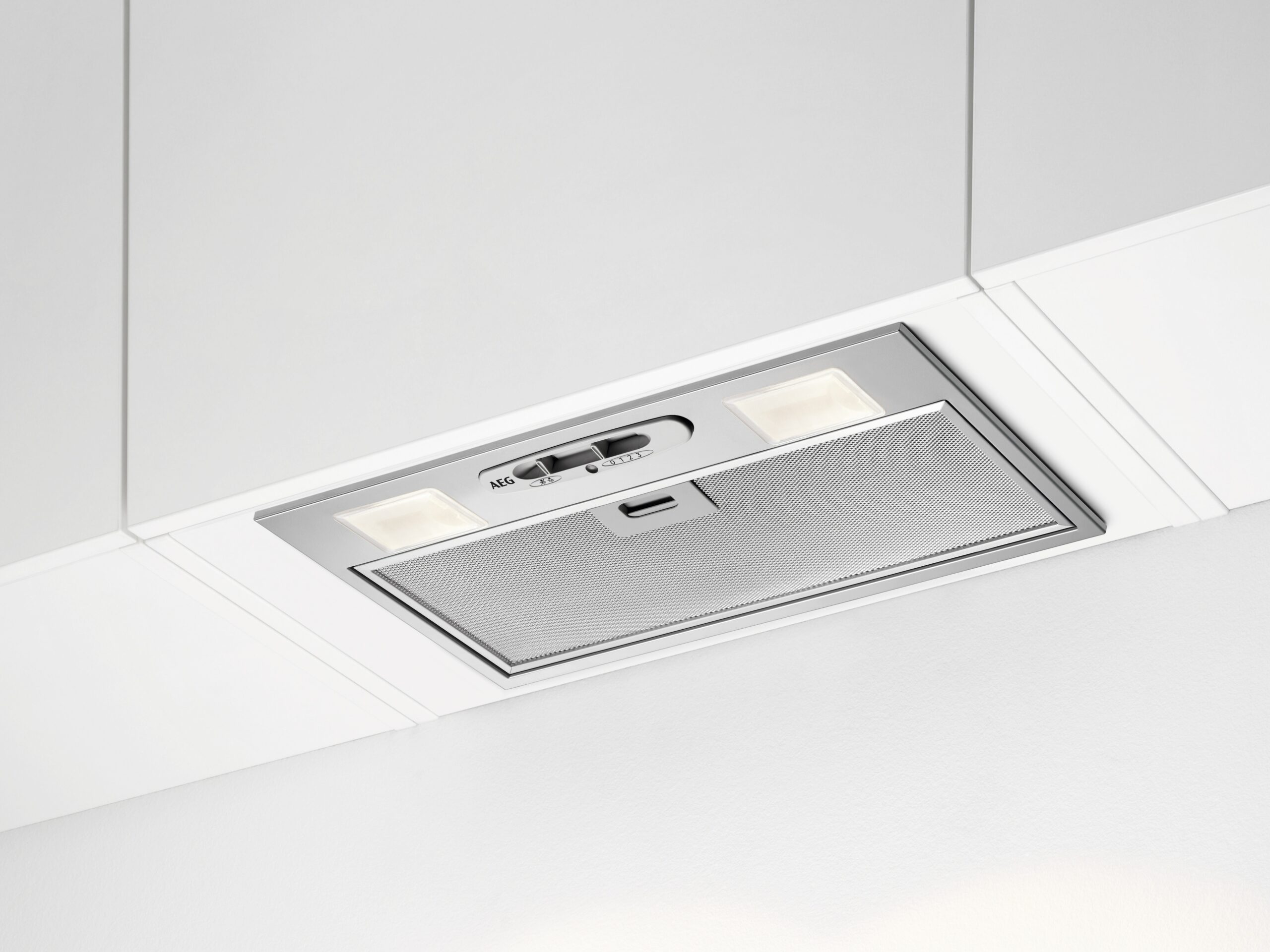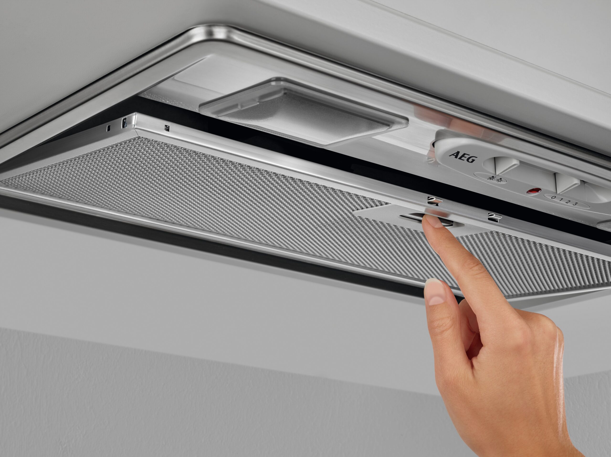 Ten dyskretny okap, umieszczony na równi z powierzchnią szafki kuchennej nad płytą grzejną, skutecznie usuwa kuchenne opary, pozostając sam niewidoczny.