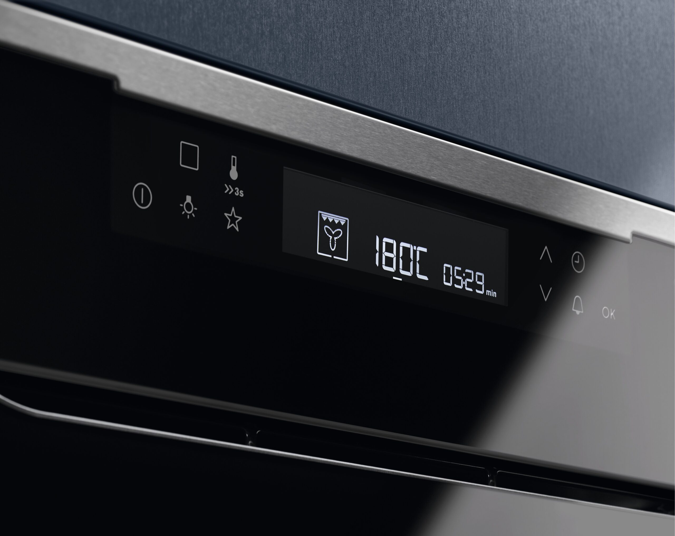 Sterowany dotykowo panel z czytelnym wyświetlaczem umożliwia elektroniczną regulację temperatury i czasu oraz wybór programów automatycznych. Zaprogramowane dla różnych rodzajów potraw ustawienia zapewniają doskonały efekt, bez ryzyka pomyłki.