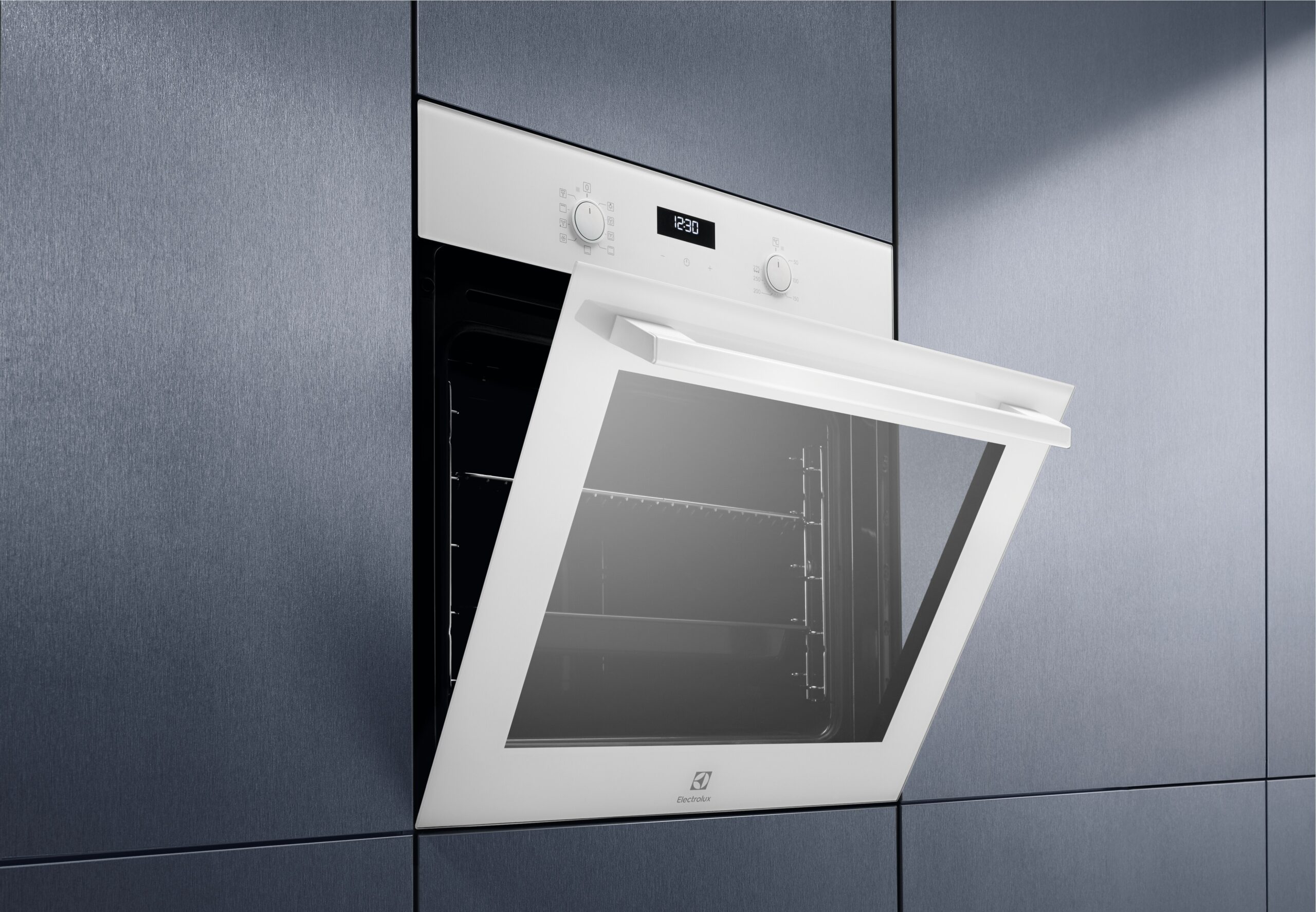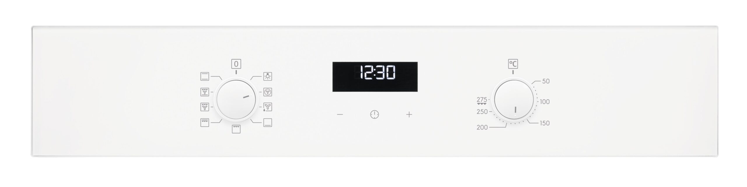 Wyświetlacz LED pokazuje czas rzeczywisty, a w trakcie pracy piekarnika można także ustawić alarm oraz czas zakończenia pieczenia, co ułatwia obsługę, gdy wykonujemy kilka czynności jednocześnie np. przygotowując kolację.