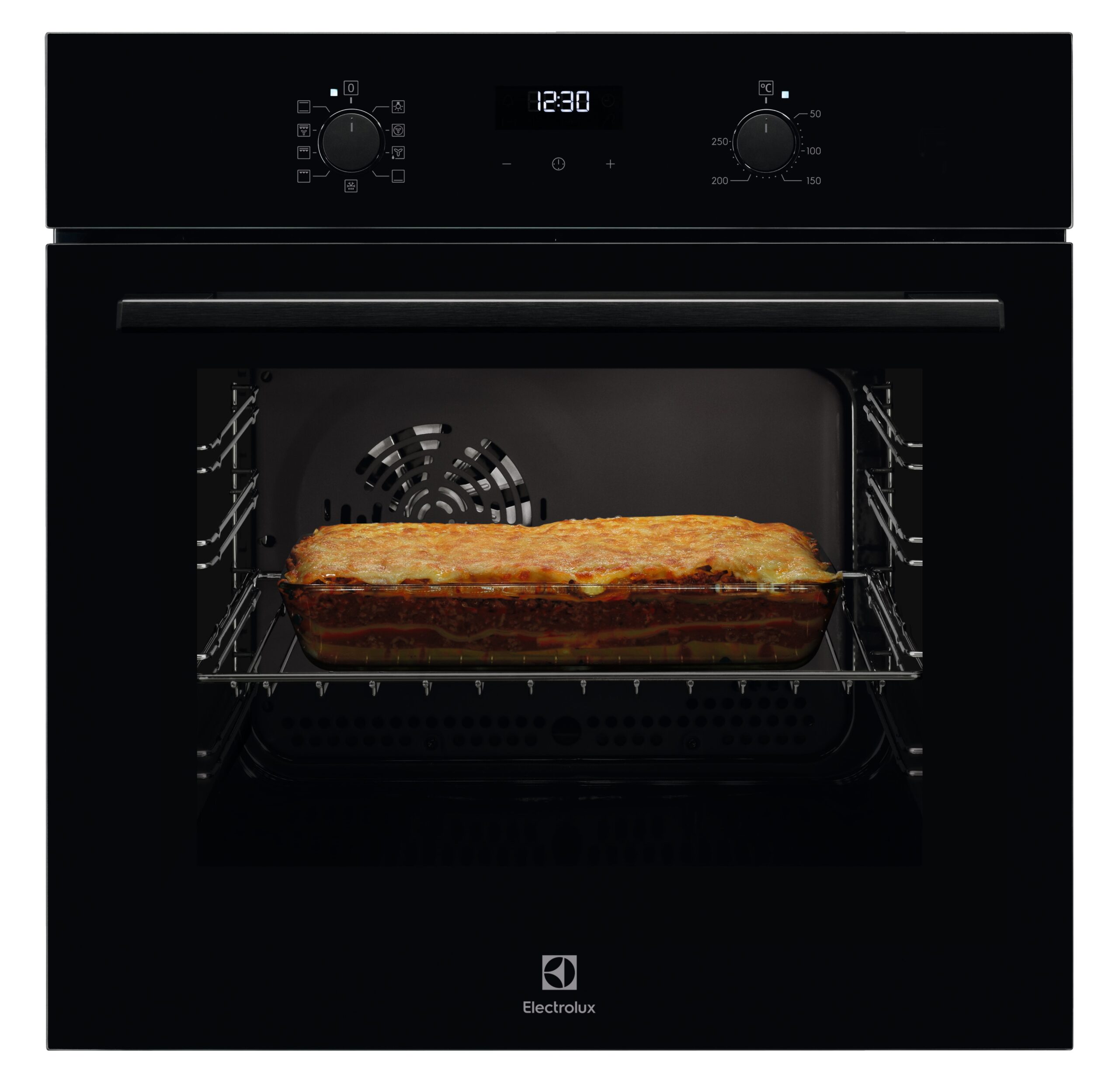 Wyświetlacz LED pokazuje czas rzeczywisty, a w trakcie pracy piekarnika można także ustawić alarm oraz czas zakończenia pieczenia, co ułatwia obsługę, gdy wykonujemy kilka czynności jednocześnie np. przygotowując kolację.