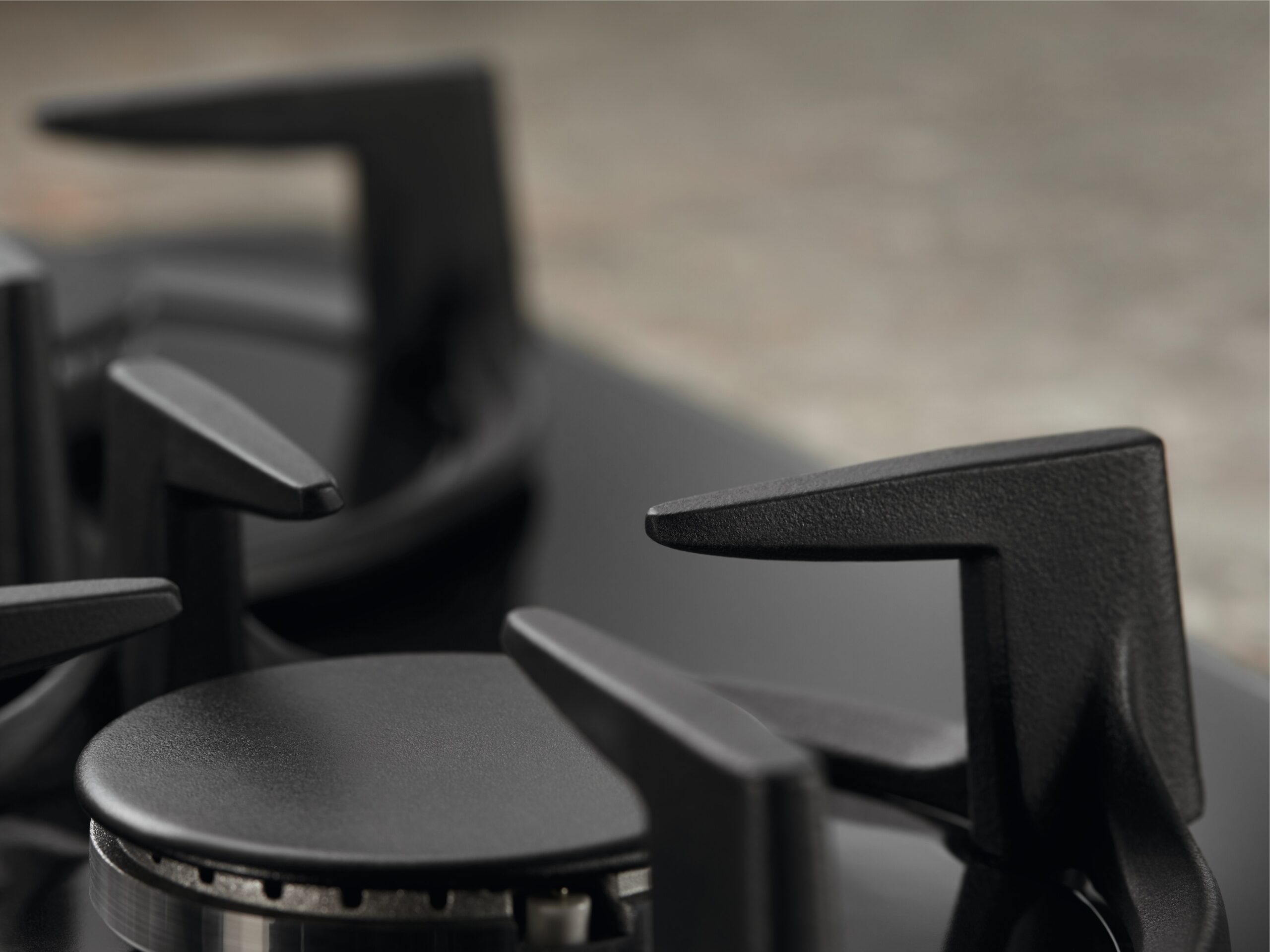 Elegancka i łatwa w czyszczeniu płyta gazowa z palnikiem Speed i żeliwnymi rusztami, kolor czarny.