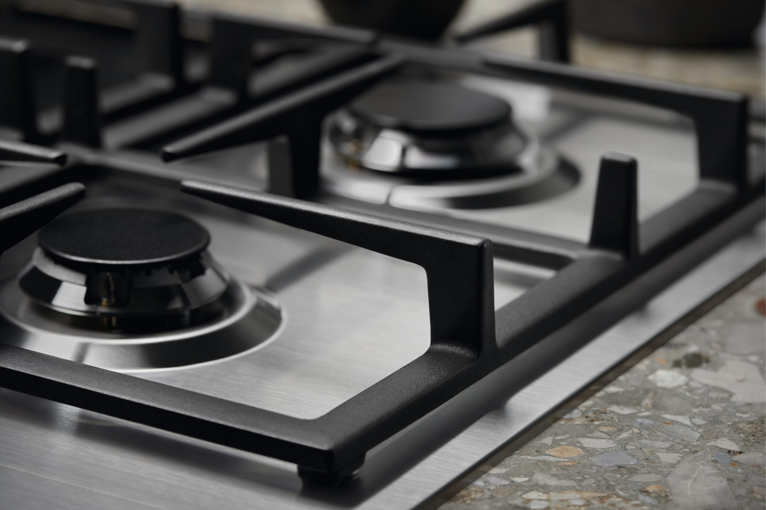 Ruszty nad palnikami płyty gazowej, wykonane z lanego żeliwa, nadają jej profesjonalny wygląd. Ich solidna konstrukcja zapewnia stabilne podparcie naczyniom, a wytrzymały materiał gwarantuje wieloletnią trwałość.