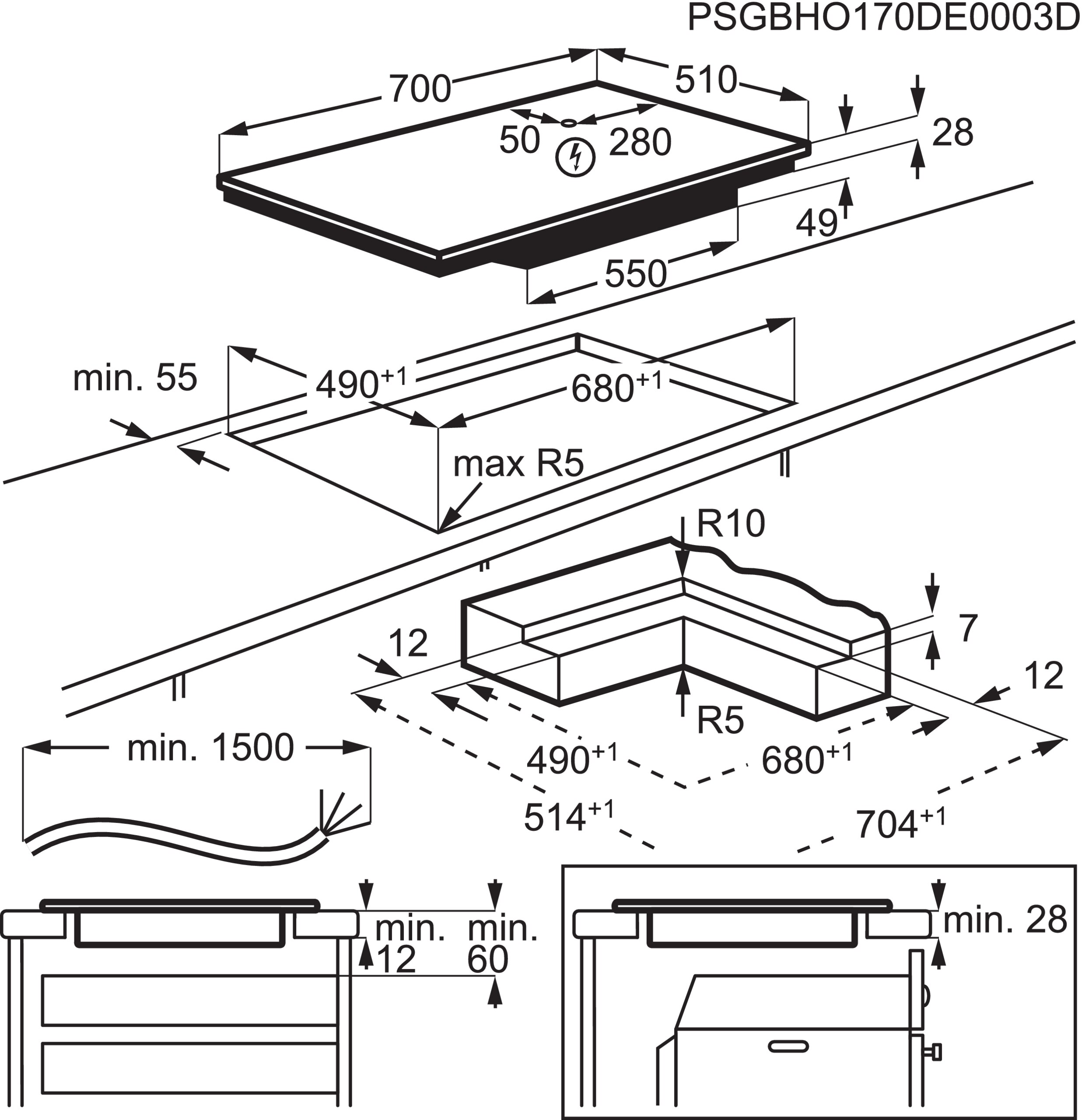 Wymiary wycięcia (W x S x G) [mm]