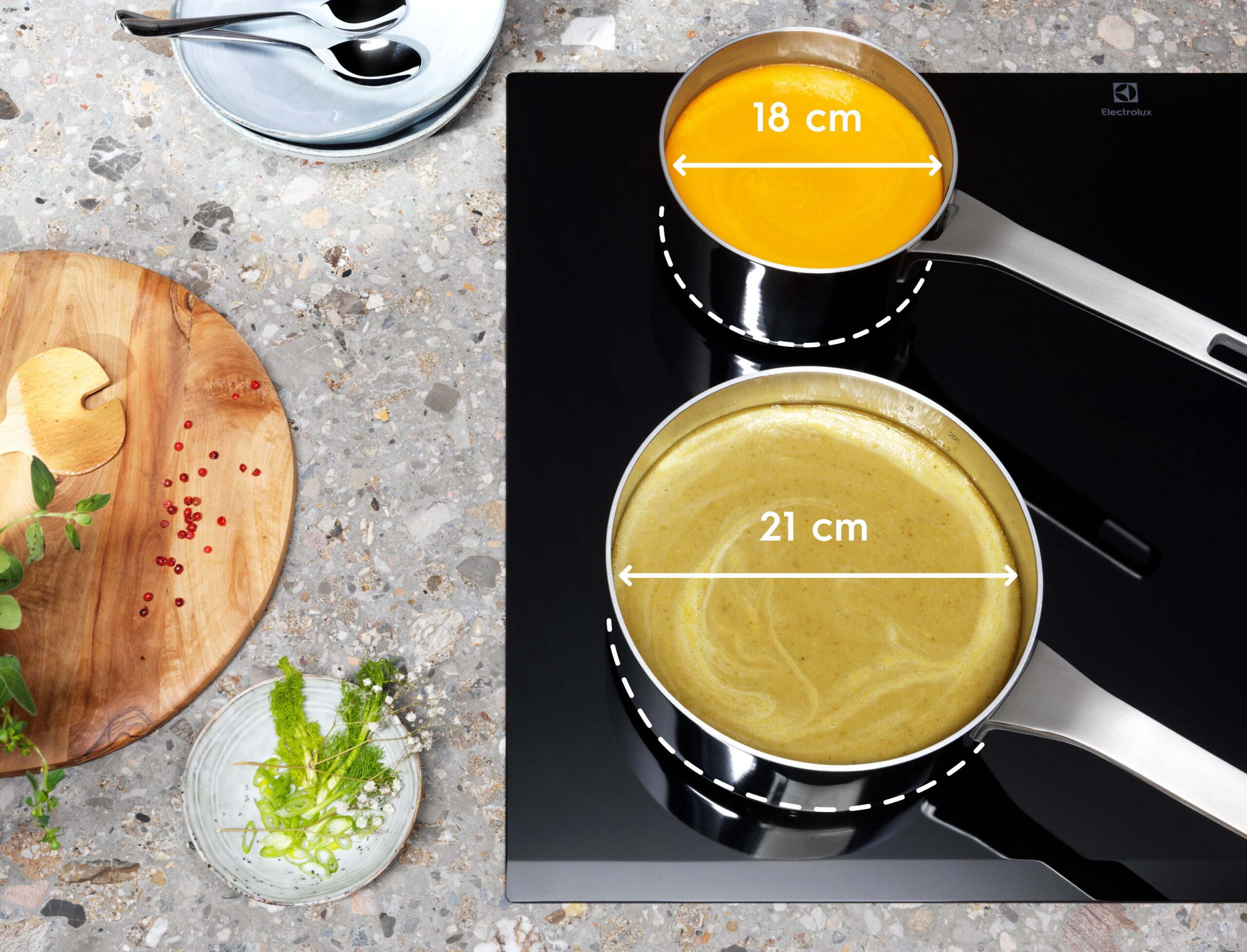 Strefy grzejne Infinite dostosowują się do rozmiarów Twoich garnków lub patelni niezależnie od ich wielkości, zapewniając najlepszą wydajność. Ciesz się efektywnym gotowaniem.