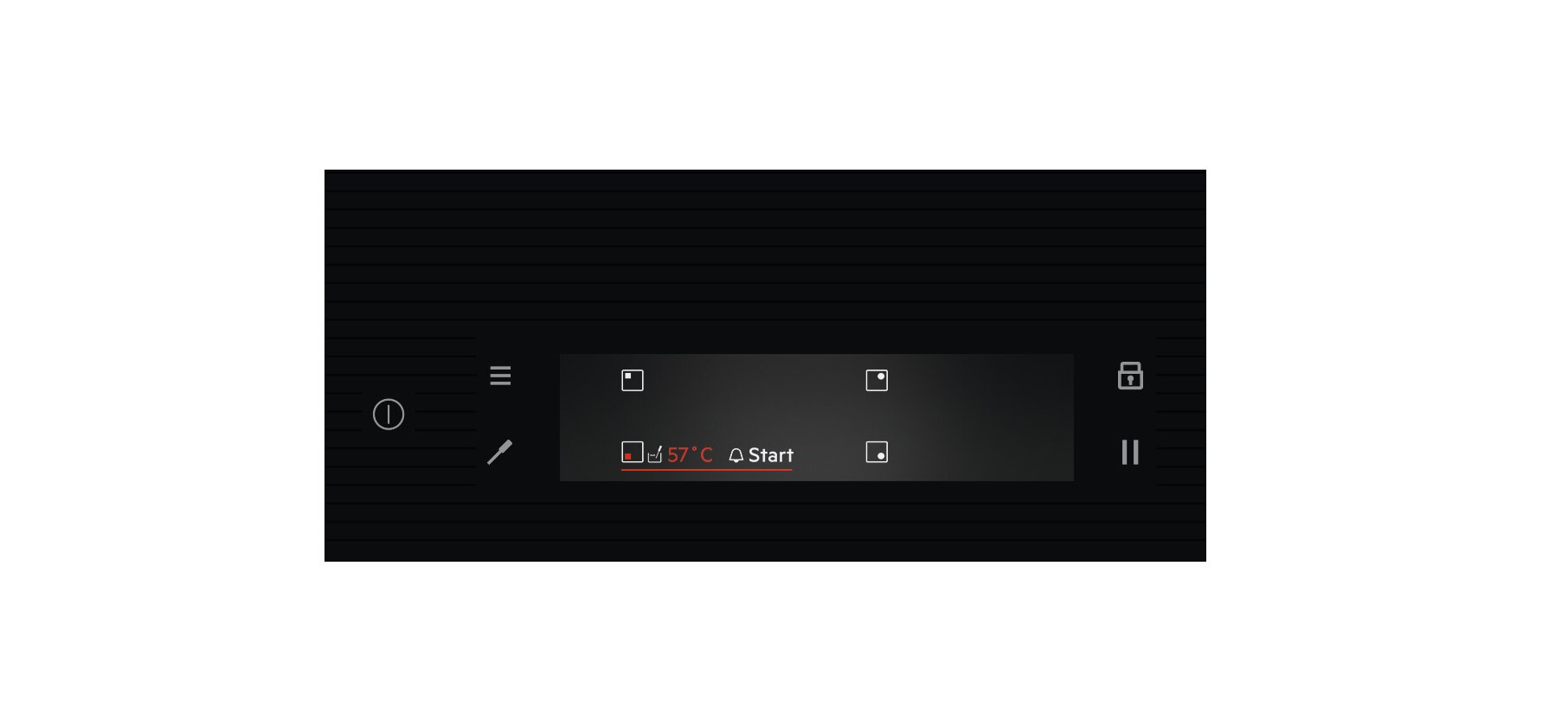 Zyskaj pełną kontrolę nad płytą grzejną, korzystając z kolorowego wyświetlacza dotykowego. Dostarcza on na bieżąco informacji o działaniu pól grzejnych i pozwala odpowiednio regulować ich ustawienia. To sposób na gotowanie za dotknięciem palca.